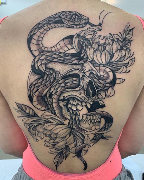 Eduardo is from Mexico and has been tattooing since 2017. He specializes in blackwork with neo-traditional influence. He likes designs with textures such as animals, flowers, skulls and lady faces! But he can adapt any custom design to suit your preferences. Check out his Instagram at @alcantar.ttt