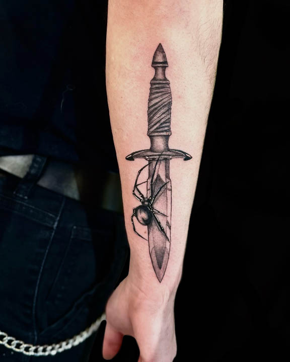 Erik previously studied architecture in Mexico. He traded his architectural drawing tools for a tattoo gun, hopped on a plane to BC, and hasn’t looked back. He has been tattooing in Greater Vancouver since 2020 and has developed his talent in traditional blackwork design. Erik also excels in fine-line and micro-realism but is up for any challenge that comes his way. Book a consultation with this blackwork tattooist at our downtown Vancouver studio today. Check out his Instagram at @style_inker