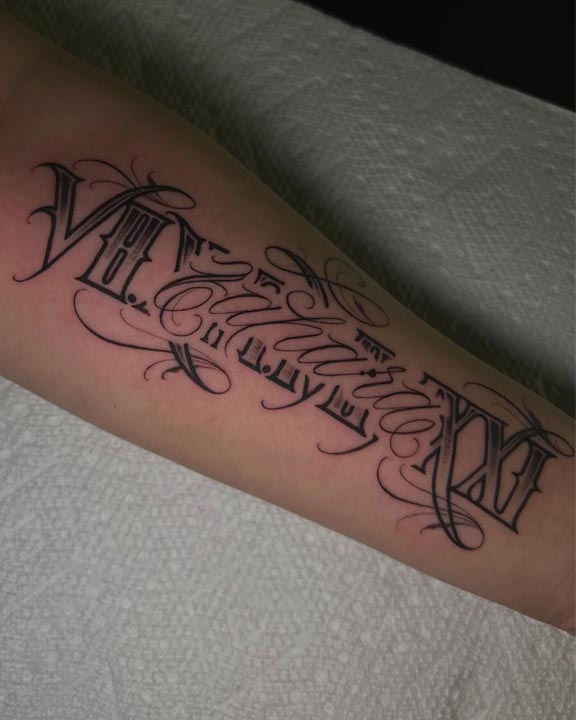 Adrenaline Vancouver has handpicked expert and up-and-coming tattoo artists who have a passion for art and working with many different mediums. A selection of these artists are highly skilled in script, lettering, and patterns, drawing inspiration from tattoo and graffiti artists from Los Angeles, Mexico, Germany, Korea, Spain, Italy and other countries all over the world. Reach out today for your custom font and calligraphy tattoo ideas.