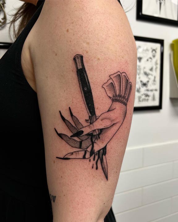 Olya was born overseas, but has spent half of her life in Vancouver BC. She has been tattooing since summer 2019. Olya is inspired by different styles such as dark ornamental, dotwork, and blackwork. Check out her Instagram at @olyatattoos